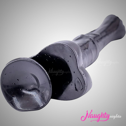 The shape and texture of the dildo mimic the sensation of penetration by a horse, with a realistic design that includes a curved and veined shaft, and a flared base for easy grip and maneuverability.