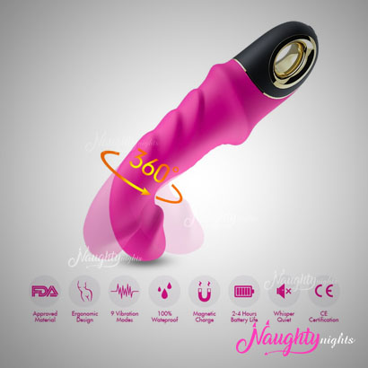 This vibrating wand has 9 different modes of vibration which you can change according to your needs. Also, one special feature of this wand is that it actually works as a replica of a dick because it gives you a 360 degree turn when it's inside you, making you cum harder. It is extremely quiet so that you can enjoy the product in your room in peace but we can’t guarantee you to not scream in pleasure because the wand is that good.