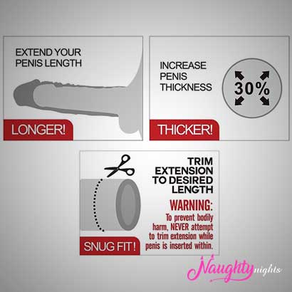 With a total of 7 inch length, it is an extremely flexible sleeve made specially to fit any penis size, all thanks to its silicone nature which allows it to fit your penis comfortably. Extending your penis is now easy with the sleeve which is reusable and easily washable. Also, it helps to increase penis thickness by 30% which gives extra satisfaction & pleasure.