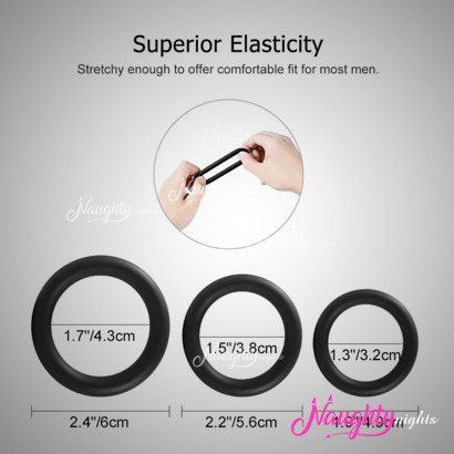 3 Pcs Cock Rings For Penis And Balls is a package of 3 silicone made penis rings of 3 different sizes which one can use together or separately. These cock rings are specially designed to increase your sex time and give you a longer-stronger erection. The rings can be paired up in any possible pattern and you can even out one on your balls. These premium silicone rings fit just right on your penis and will not be a discomfort in your sexual encounters.