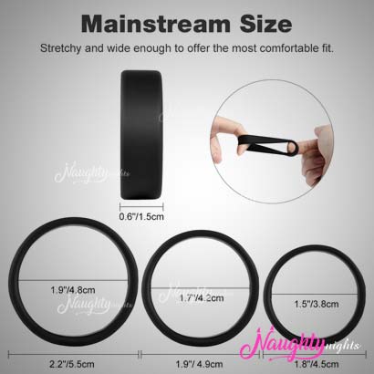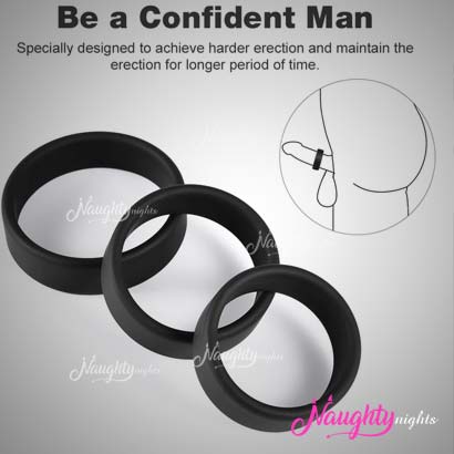The rings are made of premium quality silicone and is 100% safe on skin. 3 Pcs Premium Quality Cock Rings are very comfortable and fits just right on your penis.