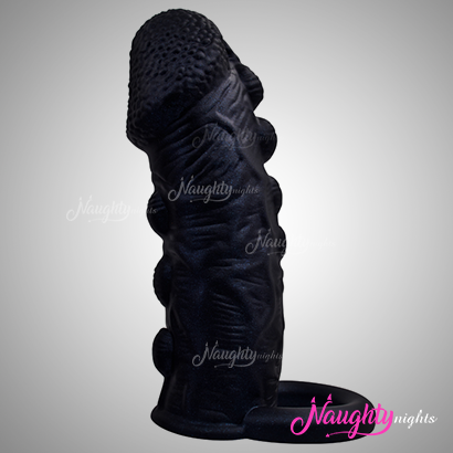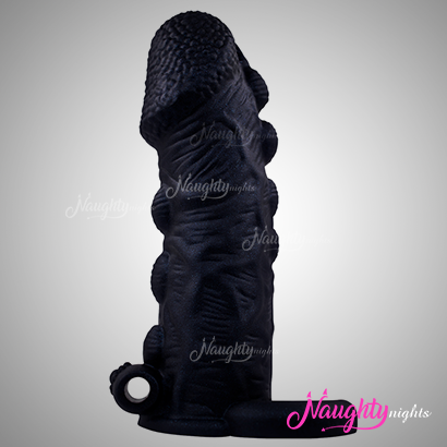 This silicone made black colored penis sleeve is featured with a vibrating bullet that fits on the top opening of the sleeve and a ring to wrap around your balls to limit the blood and increase your sex time. This complete wonder has 2 inches of extension on the top of the sleeve to give your penis a real-time increase in its size.