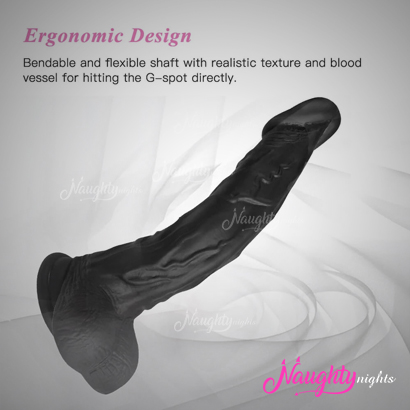 The super flexible black dildo comes with a strong suction cup which makes it extremely easy on the user to place it on a flat adhesive surface and use in any direction likeable.