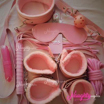 BDSM Lovers definitely love a good Bondage Kit and for the same Naughty Nights have a luxurious and premium quality Bondage Kit in Pink Color which makes for all your unmet desires. The kit consists of 1 X One pair Wrist Handcuffs - 1 X One pair ankle cuffs - 1 X Bondage Rope - 1 X Whip - 1 X Collar and Leash - 1 X Ball Gag - 1 X Blindfold.