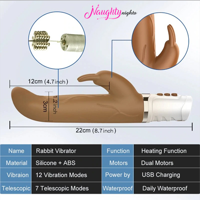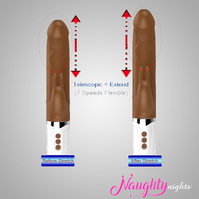 Brown Telescopic Vibrating and Thrusting Dildo is a revolutionary product which runs on dual motors. It is a luxurious product with silicone-based dildo part for insertion and plastic portion at the base for charging. On the body of the dildo, rabbit ears are present which act as massager for the clitoris area.