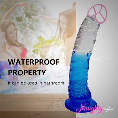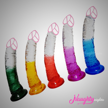 Crystal Penis Twin Color Dildo is a waterproof beauty for women which can be thoroughly enjoyed in many ways. The crystal clear and dual color of the dildo is what makes it attractive. Even with crystal clear skin, the fine detailed surface of the dildo is intricately designed. The surface has uneven texture which is extremely pleasing on penetration.