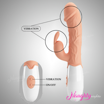Naughty nights brings you Rabbit Vibrator with two powerful motors! With one at the tip of the vibrator and another inside the rabbit-shaped clitoral stimulator, this naughty night’s vibrator offers simultaneous vaginal and clitoral stimulation for double the pleasure. Features a G-spot tip with a large head and a powerful motor, it's designed to deliver intense orgasm. The convenient touch-button control ensures effortless navigation through the various vibration patterns, allowing you to customize your experience with just the push of a button. Elevate your pleasure journey with Naughty Nights' Rabbit Vibrator and unlock a world of unparalleled satisfaction.