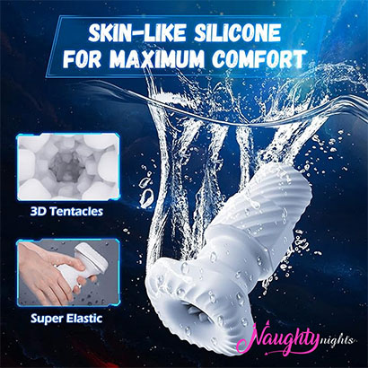 Unveil the warmth, pulse, and surge with this uniquely curated masturbator that has an inbuilt feature of 10 vibrating patterns. It has an additional feature of an inbuilt stroker mounted with the most convenient phone holder for hands-free usage of the next to natural intensity. The body-safe and soft silicone makes the masturbator exhilarating while imitating the feel of the wet, warm mouth of your partner to the best. The best part is that it can be easily charged. It can be easily charged with a USB and lets you enjoy an hour of playtime on a single charge. Catalyze the fun with your recommended lubricant. Rest assured; your privacy is taken care of with a discrete set of packaging!