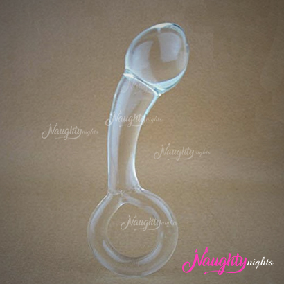 Glass Dildo With O-Ring Finger Hole Smooth Mini Curve Shape
