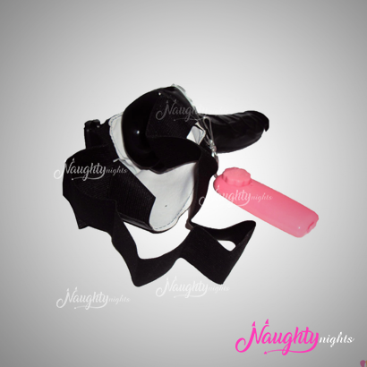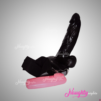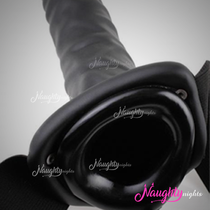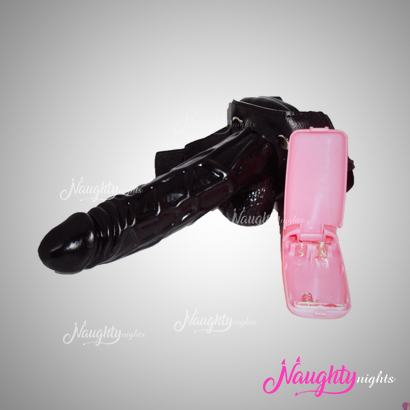Hollow Black Strap On Dildo With Vibration is a great sex toy for couples who seek extra pleasure during their intimate time together. This hollow black colored dildo can be worn by males to add extra length and girth to penis.