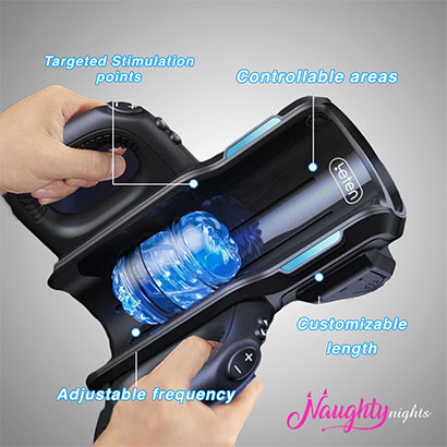 The Leten King Pro Thrusting Masturbator is a powerful, easy-to-control device that delivers a sensation as intense as a power gun. Leten King Pro offers targeted stimulation, adjustable frequency, customizable length, and controllable areas. The flexible sleeves (2) are made of ABS + TPE material which is not only super soft and safe for skin but it is also equipped with ribbed texture which makes its use super exciting.
