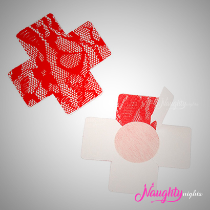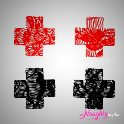 This item consists of 2 pairs of pasties, one in red and other in black color. It is extremely easy to tape in the pasties around the nipples on breasts. You can pair them up with a sexy lingerie or a roleplay item.