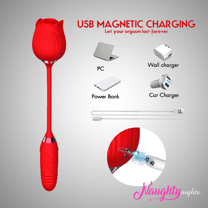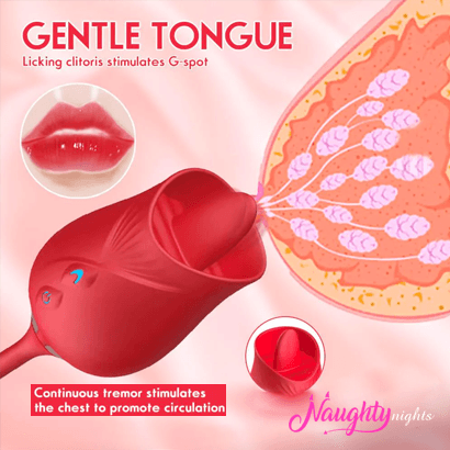 The Adorable Rose Toy – a unique vibrator that mimics a blooming rose and rosebud. Its offers flexible tongue that gives you gentle stimulation for nipples, clitoris, area and more.
