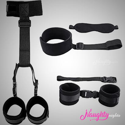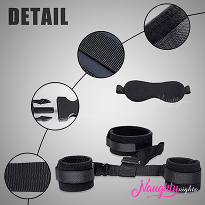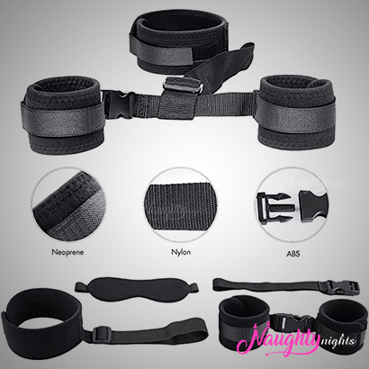 The contents of this kit include a choker, 2 handcuffs, and a blind fold. All these items are made up of high quality materials like nylon, neoprene, and ABS.