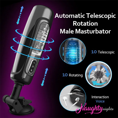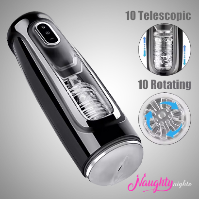 Strok King Automatic Stroker is an automatic telescopic rotating male masturbator. It boasts of some amazing features like 10 telescopic modes, 10 rotating modes, and an interactive voice that makes using the device quite realistic.