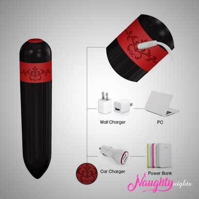 Charge the bullet by using the included power cabel in box, inserting the power cabel inside the little hole on pattern design on the head of bullet for 90 minutes.